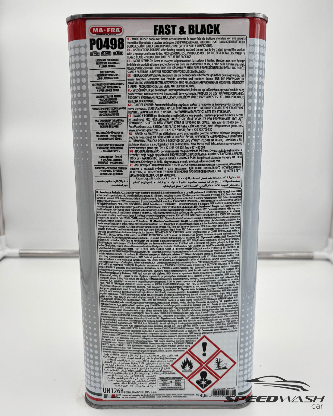 Il Fast and Black MAFRA PO498 è un lucidante professionale per gomme, progettato per restituire ai pneumatici un aspetto nero profondo e brillante con un intenso effetto bagnato.